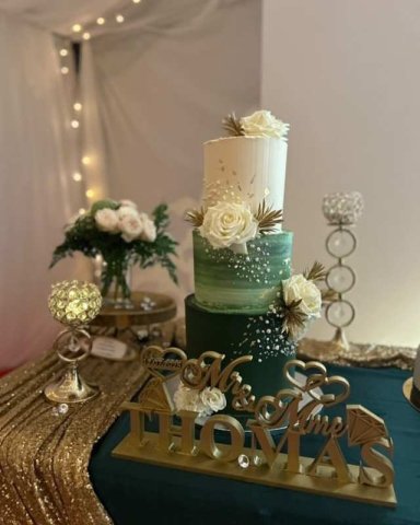 La création d’un gâteau de mariage à trois étages à Saint-Pierre à La Réunion illustre l’élégance et le savoir-faire artisanal de La Crème des Hauts. Ce dessert d’exception allie modernité et délicatesse à travers ses nuances de vert émeraude, ses touches dorées et ses fleurs blanches raffinées. Chaque détail a été pensé pour sublimer la réception et offrir aux mariés une pièce centrale à la fois esthétique et gourmande.